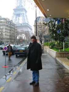 This is one of my favorite photos. I love the tower in the background on a snowy day in France.