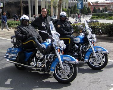 I love motorcycles and these two cops were posed so cool that I had to get a pic with them. Check out how he has his leg kicked up and laid back chillin'.