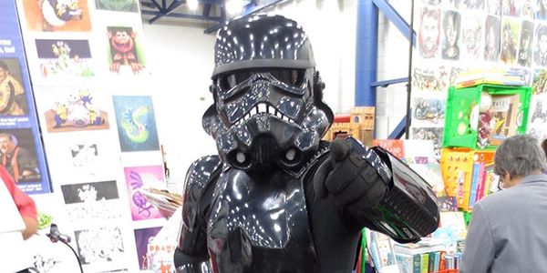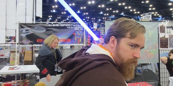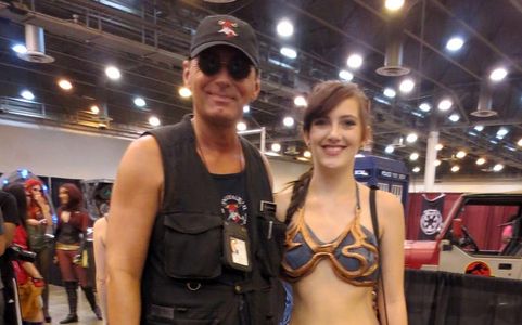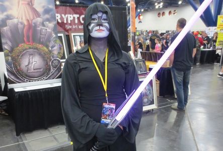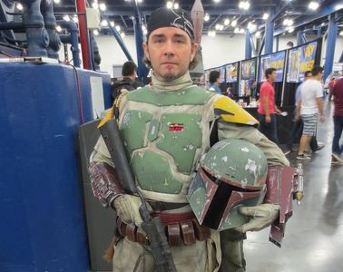 This is a photo from that same Comicon. And no, that's not David in the suit. He's old and uses crutches to get around. You can see his crutches in the above picture, to the right side, behind him.